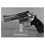 50.    Colt – Mod. Python – 357 Mag. Cal. Double Action Revolver – w/4” Barrel w/Ramp Front & Adj. Rear Sights – Nickel Finish – w/Colt Medallion Checkered Wood Grips – w/Factory Colt Box & Papers