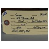 35.    Sako – Mod. L461 Heavy Sporter Varmint – 222 Rem. Cal. Bolt Action Rifle – w/23 ½” Heavy Barrel (No Sights) – Blued Finish – w/Checkered Pistol Grip Wood Stock w/Factory Butt Plate – w/Scope Rings & Bases