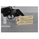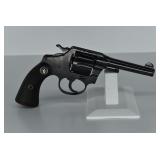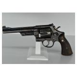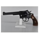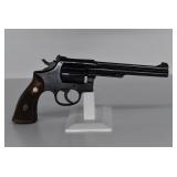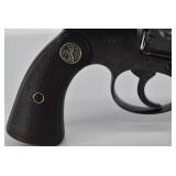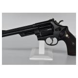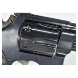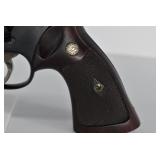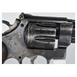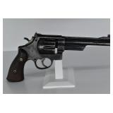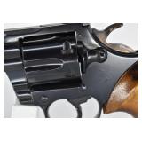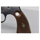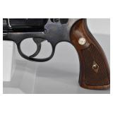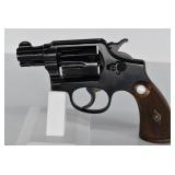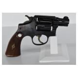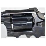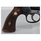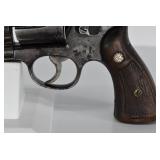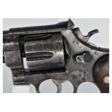 59.    Smith & Wesson – Mod. 38 Hand Eject (.38 Military & Police Post War Pre-Mod. 10) – 38 Spl. Cal. Double Action Revolver – w/5” Barrel w/Blade Front Sight – Blued Finish – w/S&W Medallion – w/Diamond Checkered Wood Grips