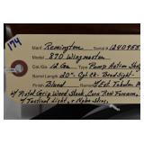 16.    Remington – Mod. 870 Wingmaster – 12ga. Pump Action Shotgun – w/28” Mod. Choke, Vent-Rib Barrel w/Bead Sight – Blued Finish – w/Checkered Capped Pistol Grip Wood Stocks w/Factory Recoil Pad