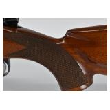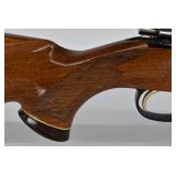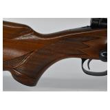 9.       Ithaca Gun Co. – Mod. LSA 65 – 30-06 Sprg. Cal. Bolt Action Rifle – w/22” Barrel (No Sights) – Blued Finish – w/Checkered Capped Palm Swell Pistol Grip Wood Stock w/Raised Cheek Piece – w/Detachable Mag – w/Tikka Scope Rings