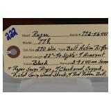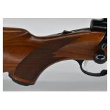 31.    Ruger – Mod. 77R Tang Safety – 30-06 Sprg. Cal. Bolt Action Rifle – w/22” Barrel (No Sights) – Blued Finish – w/Checkered Capped Pistol Grip Wood Stock w/Red Rubber Butt Pad – w/Rings – As New w/Factory Box & Manuals