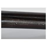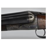 444.  Ithaca – Mod. Hammerless – 12ga. Double Barrel Shotgun – w/30” Barrels – Blued Finish – w/Checkered Round Knob Pistol Grip Stock w/Factory Butt Plate – Note:  Large Chip in Wood at Tang w/Factory Butt Plate