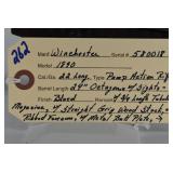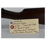 14.    Winchester – Mod. 94 (Pre-64) – 30 WCF Cal. Lever Action Rifle – w/20” Barrel w/Sights & Full Length Tubular Magazine – w/Straight Grip Wood Stocks w/Factory Butt Plate & 3 Tacks in Butt Stock – w/Leather Sling