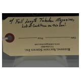 ABSENTEE BIDS AND PHONE BIDS WILL BE ACCEPTED up to 5 P.M of the Friday preceding the sale unless we have given you prior authorization.  In the event of duplicate bids, the first bid received will take precedence.   All sales are final and the outstanding balance must be paid in full immediately.  Items/Lots MUST be inspected before leaving your absentee bid.  Note:  Absentee Bids CANNOT be cancelled the day of the sale