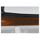 452.  Winchester – Mod. 88 – 284 Win. Cal. Lever Action Rifle – w/22” Barrel w/Front Sight & Flip Down Rear Sights – Blued/Gray Finish – w/Oak Leaf/Basketweave Checkered Capped Pistol Grip Wood Stock w/Correct Winchester Butt Plate – w/Correct Caliber Marked Clip