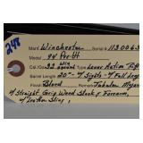 34.    Winchester – Mod. 94 Carbine – 30-30 Win. Cal. Lever Action Rifle – w/20” Barrel w/Sights & Full Length Tubular Magazine – Blued Finish – w/Straight Grip Wood Stocks w/Factory Butt Plate – w/Factory Box