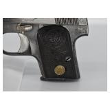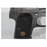 429.  Austrian – Mod. OWA – 25 Auto Cal. Semi-Auto Pistol – w/2” Barrel – Blued – w/Factory OWA Marked Grips – w/Mag – Previous Owner SS# is on Right Side of Frame