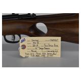 33.    Sako – Mod. P72 Sporter – 22LR Cal. Bolt Action Rifle – w/22 ½” Barrel (No Sights) – Blued Finish – w/Checkered Pistol Grip Wood Stock w/Raised Cheek Piece – w/Factory Box, Sights & Scope Rings