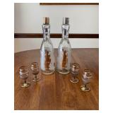 - 2 Decanters. 4 Bohemia Crystal Shot Glasses Made In Czechoslovakia