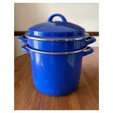 - Blue Speckled Enamel Stock Pot W/Strainer