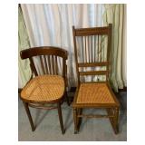 - 2 Caned Small Chairs. 1 Is A Rocker
