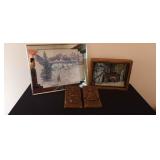 - Mirrored Winter Print By Phil Prentice, Deer Clock & 2 Plaster Plaques