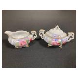 - Handpainted Takiro Japan. Footed Porcelain Creamer & Sugar