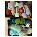 - 2 Boxes Of Yarn & Wooden Embroidery Hoops