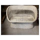 - Vintage Footed Wicker Stool Or Ottoman