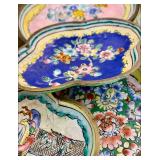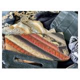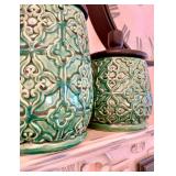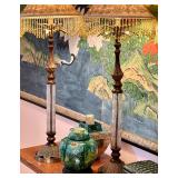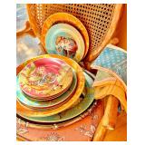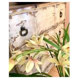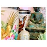 Baskets in abundance, luggage racks, stylish faux flowers, charming vases in soft colors, art glass bowls, coffee table books, Italian painted pottery stand, pair of wall shelves in distressed cream, leather topped round side table on wood legs and stretcher, Asian lidded canisters, tall faux plant in large pot, set of Chinese ceramic openwork wall hangings, painted gourds and handmade rustic décor, mahogany writing desk, cache pots, storage cabinet on iron stand, large rectangular wall mirrors in ebonized & gilt frames, tall white pottery dog figure, Chinese jade and stone faux tree, painted leather Chinese chest, pair blanc de chine oversized ginger jars, carved avian figures, decorative boxes, cloisonné ginger jars and vases. Room sized wool rug in pale blues and browns, jute and sisal woven rugs, large bold patterned flat weave rug in earth tones with black highlights, tufted area rug in earth colors and foliage pattern, area rug in soft greens and pinks, various sizes Persian style wool area rugs in deep reds and earth tones. Build a whole room upon the love of a wonderful rug! Lighting: the jewelry of the home! Pair glass column lamps and silk shades, floor lamps, mid century pottery table lamps, leather wrapped modern table lamp, desk lamp, pair fringed buffet lamps, blanc de chine lamp on wood pedestal, pair floral ceramic urn shaped boudoir lamps in lilac, hand painted Asian ginger jar style table lamp.