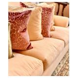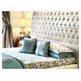Furnishings Abound Plush petal-pink linen sofa and side chairs, quality hardwood distressed traditional dining table and 8 chairs, charming round light-toned dining table on carved pedestal with set of caned back chairs with pink toile cushions, Chesterfield type wheat linen tufted sofa, distressed ivory 3-drawer chest, double width bookcase with 8 shelves, 6 shelf modern teak bookcase, handsome long antique Chinese altar/console table, king bed with tall grey bead board headboard, pair of black leather mid-century armchairs with ottoman, modern white writing desk/console table styled with 2 upholstered toile X-frame stools, versatile lattice-front 2 door wood cabinet, brass and glass top cocktail table, octagonal glass top wood coffee table, petite drop front secretary desk, modern wood console table styled with pair of square upholstered stools, modern wood suspended drawer style hardwood desk, king bed with grand 6’ tufted silver grey velvet headboard. Start with a piece you love and follow its lead!