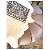 Find that mysterious touch your favorite room is missing! Pair of fine hardwood oval side tables with under shelves, round velvet stool with carved legs, glass top table on decorative cement column, caned bench seat with curved wood arms, oversized round tufted ottoman, brass galleried side table with undershelf, fauteuil chair in ivory & gilt frame in pale gold upholstery, stone topped tripod table, oversized rectangular mohair ottoman on wood legs, rustic unfinished carved Chinese table, classic bombe chest of drawers, chenille upholstered modern bench, elegant inlaid shaped wood table on twin pedestal legs, gorgeous demilune side cabinet, set of four pale-toned wood counter stools.