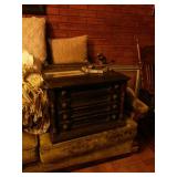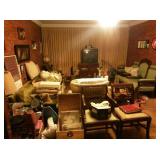 There's so much to see here...(Just finished the garage last night) Antique Furniture Art Thousands of pieces of Costume Jewelry Antique Glassware Royal Doulton China Other China Cut to Clear Bohemian Glass (1900-1910) Clothes (She Ballroom Danced until she was in her early 90's) Antique Record Cabinet Antique Curio Sideboard Drop Leaf Dining Table Washer & Dryer Vintage Fridge Vintage Secretary Gorgeous Antique Mantle Clock Vintage EZ 1920's Gumball Machine Old Spool Thread Sewing Cabinet w drawers Cast Iron Antique Dragon Ashtray (How cool is that) Sofa Chairs Accent Tables Furs Tapestries (AND SO MUCH MORE)