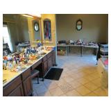doll stands and furniture, Momoko dolls, Ashton Drake, Effenbee, Ideal, dolls, Ellowyne & Wild dolls, antique high chair/stroller, costumes, 80 rock Records, Hookah, 5 neon bar/bar signs, Dresden,