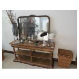 3 entertainment centers, sofa, wood & iron coffee, end, and sofa tables, antique night stands, antique dresser, small sectional, sofa table, book shelves, Black leather chaise, black leather ottoman, computer desk,