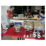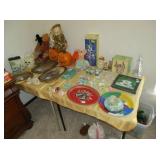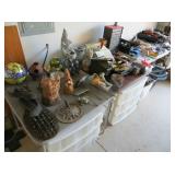 vintage birdcages with stands, Meito Annabelle china, Miller light mini fridge, paperweights, large snow babies collection, costume jewelry, Murano glass, Armani eagle statue, antique trunk, BB guns,