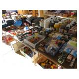 100s CDs, tons of hand, power and yard tools, table saw, generator, power washer, 2 mowers, gas weed eaters, skill saws, drills, planers, grinders, routers, pressure treated wood, ladders, ice chest, storage tubs, concrete statuary,huge Lasko shop fan,