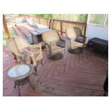 2 fridges, upright freezer, Duncan Phyfe dining chairs, wood file cabinets, antique 3 tier table, vinyl wicker patio set with settee, 4 chairs, tables, gas fire pit, oak curved class curio cabinet, curio cabinet, craft desk, Chippendale syle bench,