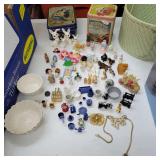 - Lot # 4 - Misc. Miniature Figures/Nic Naks (Approx 1" to 2" tall), Lennox Dish, Trifari Necklace