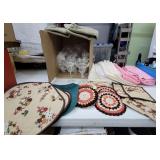 - Lot # 5 - Plastic Stemware for Margaritas, Handmade Doilies, Placemats, Table Cloths, and more