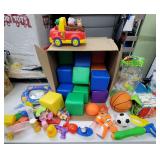 - Lot # 10 - Misc. Toys. Includes Plastic Letter Blocks, Bubble Gun with Bubbles, and more.