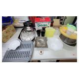 - Lot # 25 - Housewares including Safari Qwik-Cook Grill, Oven Broiler Pan, Milk Glass, Tupperware, Bundt Cake Pan, and more