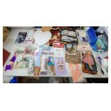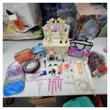 - Lot # 66 - Buttons, handmade doll with bed, thread, ribbon, tapestry needles, assorted sewing needles and more