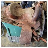 - Lot # 84 - Saddle with all gear pictured. Bridal and lead, stirrups and chest piece. This needs a good cleaning