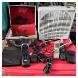 - Lot # 132 - Misc. Electronics & Cords including a fan, old cable modem, cordless phone, 2 old cell phones. Condition unknown.