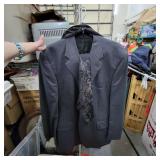 - Lot # 153 - 46R Suit jacket. Pants Size Unknown but at least a 40 waist. Comes with zip-up suit cover.