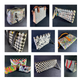 A local collection of unique Nahui Ollin Purses & Bags. Nahui Ollin bags are made from recycled materials. Every bag is unique and is constructed from newspapers, comic books, barcodes, magazines, candy wrappers or bottle labels. Nahui Ollin is inspired by ancient South American traditions and mythology.