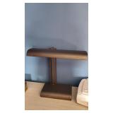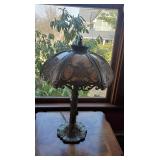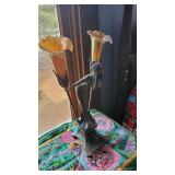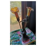 *Gustave Gurschner Art Nouveau bronze figural lamp with art glass favrille shades. Signed.