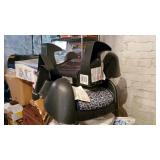 *FURNITURE: Mahogany double pedestal dining table with a set 10 of Queen Ann style dining chairs. The table has custom made pads which have covered this table for years. The table and chairs are in very good condition. King size brass bed with matching footboard. Ikea child’s bed. Night stands, chests, desks and credenza’s. GLASS, CHINA, POTTERY: A selection of bone china cups and saucers. Various pieces of Lenox. Studio pottery, Slag Glass, Wine glasses etc, Oneida ware plated flatware set. ITEMS OF INTEREST: Baritone horn in case. Pair of large geode bookends. Geode globe. Fischer New York upright piano. JEWELRY: There will be a small selection of costume and silver jewelry. Details to follow BASEMENT: Holiday decorations and Holiday serving ware. Games and Toys. Youth bike. Snowboard. Small kitchen appliances. Kitchen ware and serving items. Outdoors: Ariens Snow blower, Toro Lawnmower, Husquevana leaf blower. Ladders. Composter, Teak Bench….