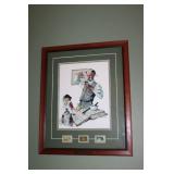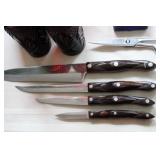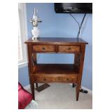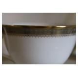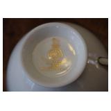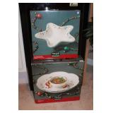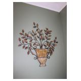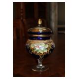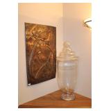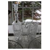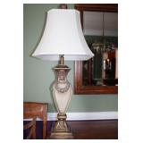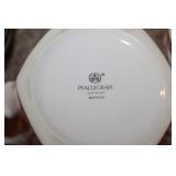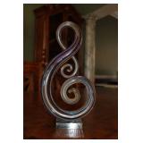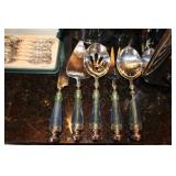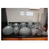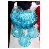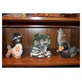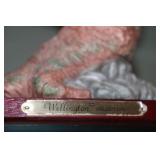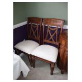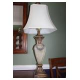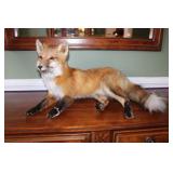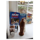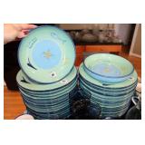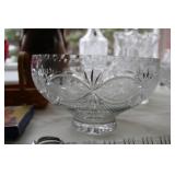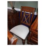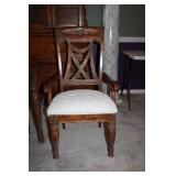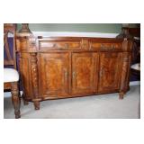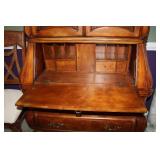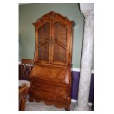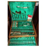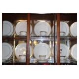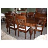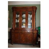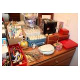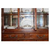 DINING ROOM-BEAUTIFUL WOOD DINING TABLE W/2 LEAFS & 10 CHAIRS, MATCHING BUFFET/MIRROR & CHINA CABINET (ASHLEY FURNITURE), TALL WOOD SECRETARY, 2 MATCHING LAMPS, ROYAL DOULTON CLARENDON CHINA SET, BRONZEWARE FLATWARE SET IN CASE, WEIGHTED STERLING CANDLE HOLDERS, CUTCO KNIVES & SCISSORS, COBALT BLUE HALL PITCHER FOR WESTINGHOUSE, RUBY RED DISHWARE, TURQUOISE LUNCHEON SET, GLASS MUSIC NOTE, CRYSTAL & STEMWARE, STAR TREK ITEMS, TAXIDERMY FOX, LOVESEAT, METAL WALL ART