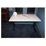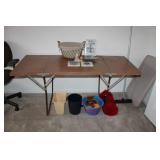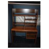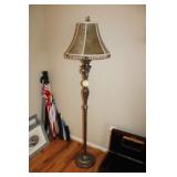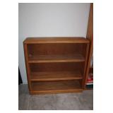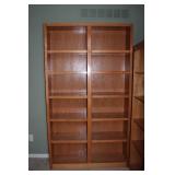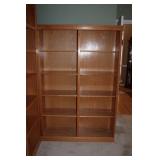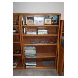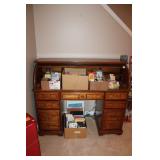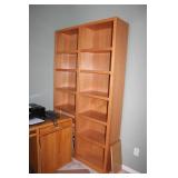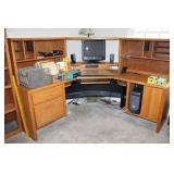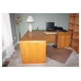 DEN OFF ENTRY- OAK DESK & OAK BOOKCASES, FLOOR LAMP, COMPUTER MONITOR & PRINTER
