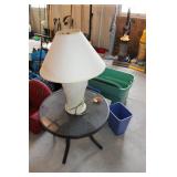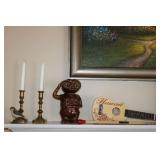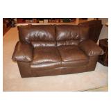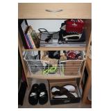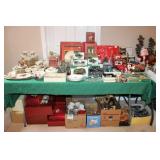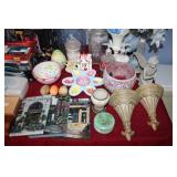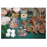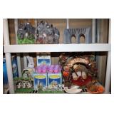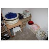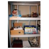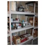 BASEMENT- GLASS/BRASS DISPLAY SHELF, ROLL TOP DESK, HOLIDAY, PFALTZGRAFF DISHES, BROWN LEATHER SOFA/LOVESEAT & CHAIR W/OTTOMAN, END TABLES, LAMPS, SQUARE COFFEE TABLE, FAUX TREE, CONSOLE TABLE, ENTERTAINMENT WALL UNIT, TAXIDERMY, ANTIQUE MANTLE CLOCK, LENOX WINTER GREETINGS DISHWARE, KITCHENWARE, VINTAGE AIRPLANE WALLPAPER, DRESSER, HOUSEHOLD/TOOLS/HARDWARE, DESKS, NIB TEAC TURNTABLE