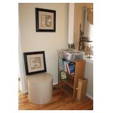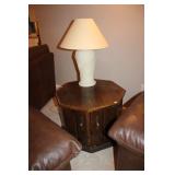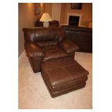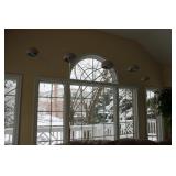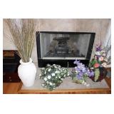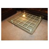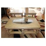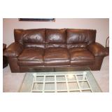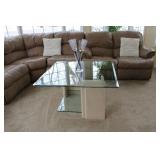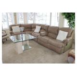 FAMILY ROOM/SUNROOM- MATCHING WOOD END TABLES & COFFEE TABLE, WALL ART, LEATHER SECTIONAL SOFA, GLASS COFFEE TABLE, FOOTSTOOLS, E.T. BANK, DECOR, BOOKS, MEDIA, BOOKCASE, WOOD JEWELRY BOXES, LAMPS, FLORALS, SINATRA ALBUM SET, AREA RUG, FAUX TREE