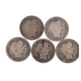 - 2034 LOT OF 5 ASSORTED BARBER EARLY SILVER DIMES