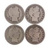 - 2052 LOT OF 4 BARBER EARLY SILVER HALF DOLLARS