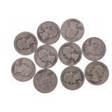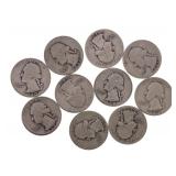 - 2054 LOT OF 10 ASSORTED KEY DATES WASHINGTON SILVER QUARTERS