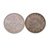- 2325 LOT OF 2 1935 SILVER PEACE DOLLARS