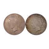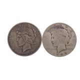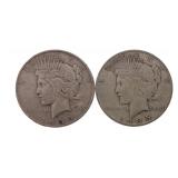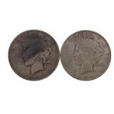 - 2407 LOT OF 2 1922 SILVER PEACE DOLLARS
