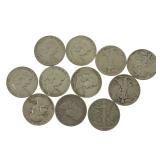 - 2406 LOT OF 11 ASSORTED WALKING LIBERTY & FRANKLIN SILVER HALF DOLLAR